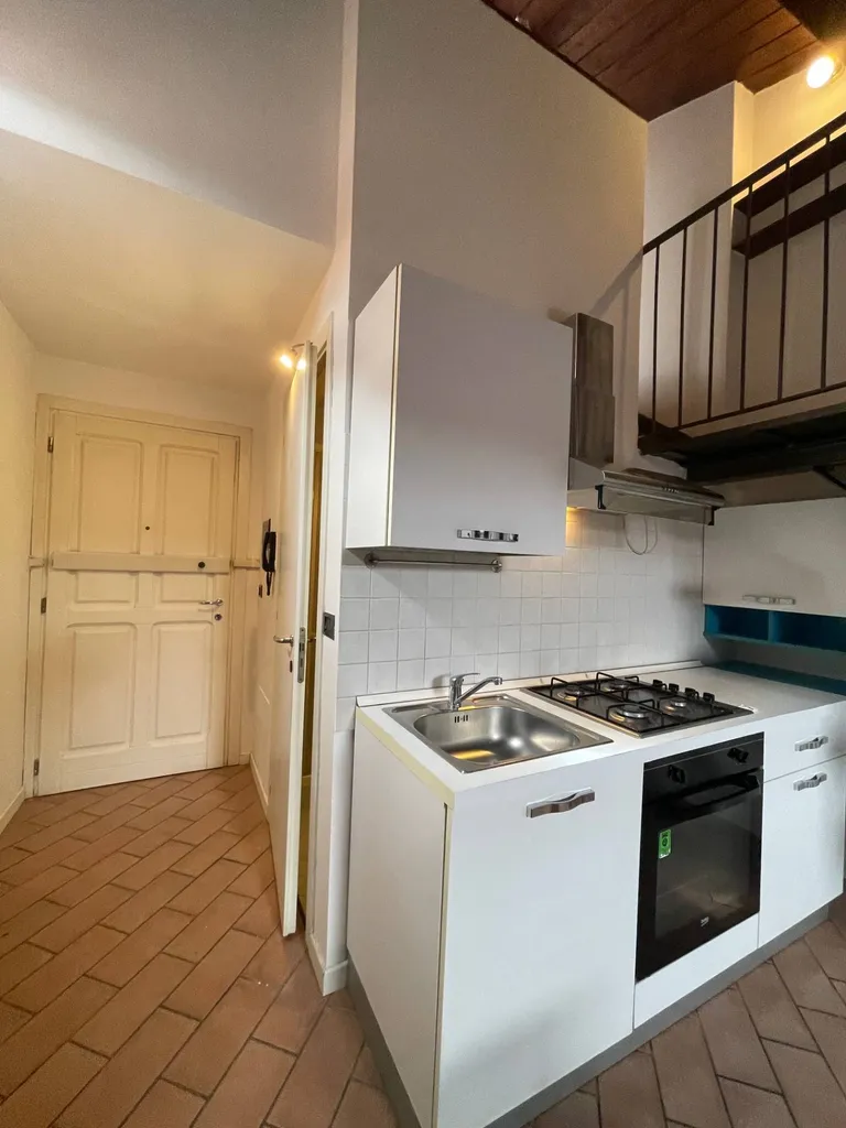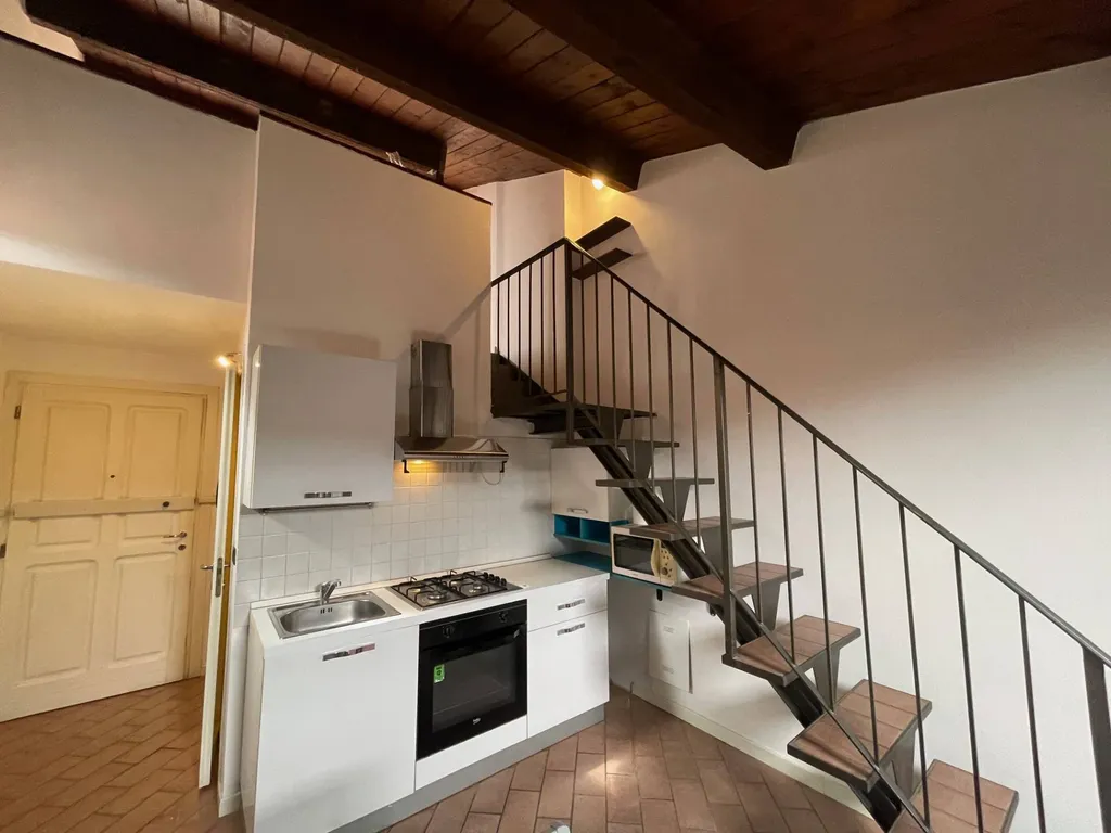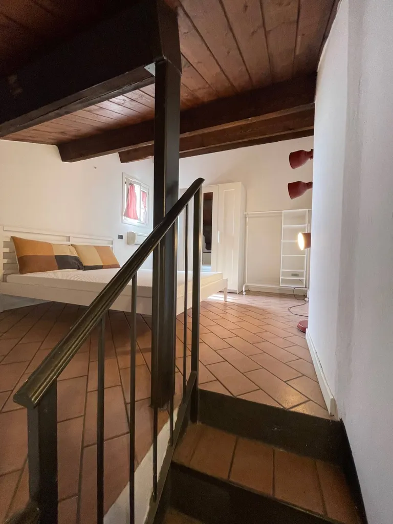 Rif. 2379 - Appartamento in affitto a Ferrara, Via Ripagrande, centro storico. Libero, in piccola palazzina ristrutturata di sole sei unità, splendido bilocale al terzo ed ultimo piano composto da, ingresso, soggiorno con cucina a vista, camera da letto matrimoniale in soppalco. Bagno con doccia. Travi in legno a vista. Utenze autonome e climatizzato. Deposito cicli.