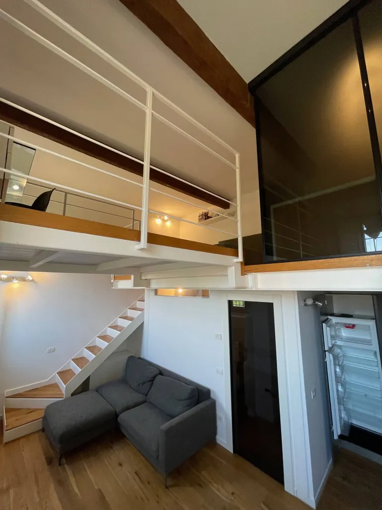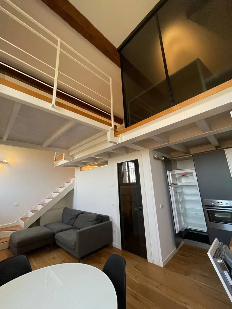 Rif. 3980 - Appartamento in affitto in palazzo storico adiacenze Cocomaro di Focomorto e il nuovo polo ospedaliero di Cona, Ferrara. Al piano terra, disposto su due livelli, si affitta splendido appartamento in palazzo del 1800 dotato di posto auto e ampi spazi condominiali. Internamente limmobile si presenta come un open space a doppio volume con soggiorno e cucina a vista, zona notte soppalcato con cabina armadio dedicata e zona studio. Antibagno con zona lavanderia, bagno con doccia. Climatizzato, riscaldamento a pavimento.