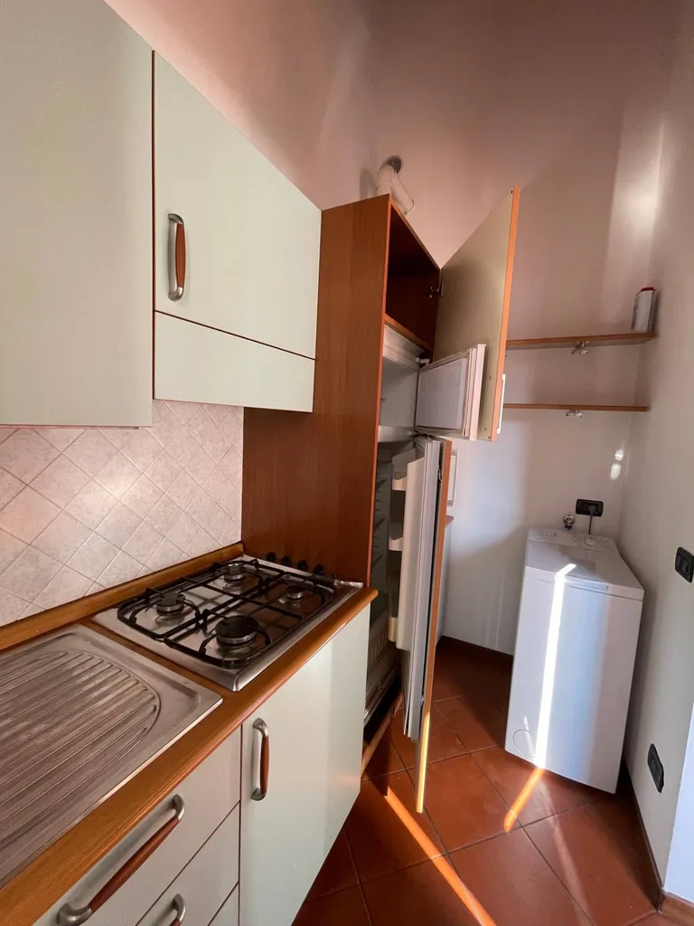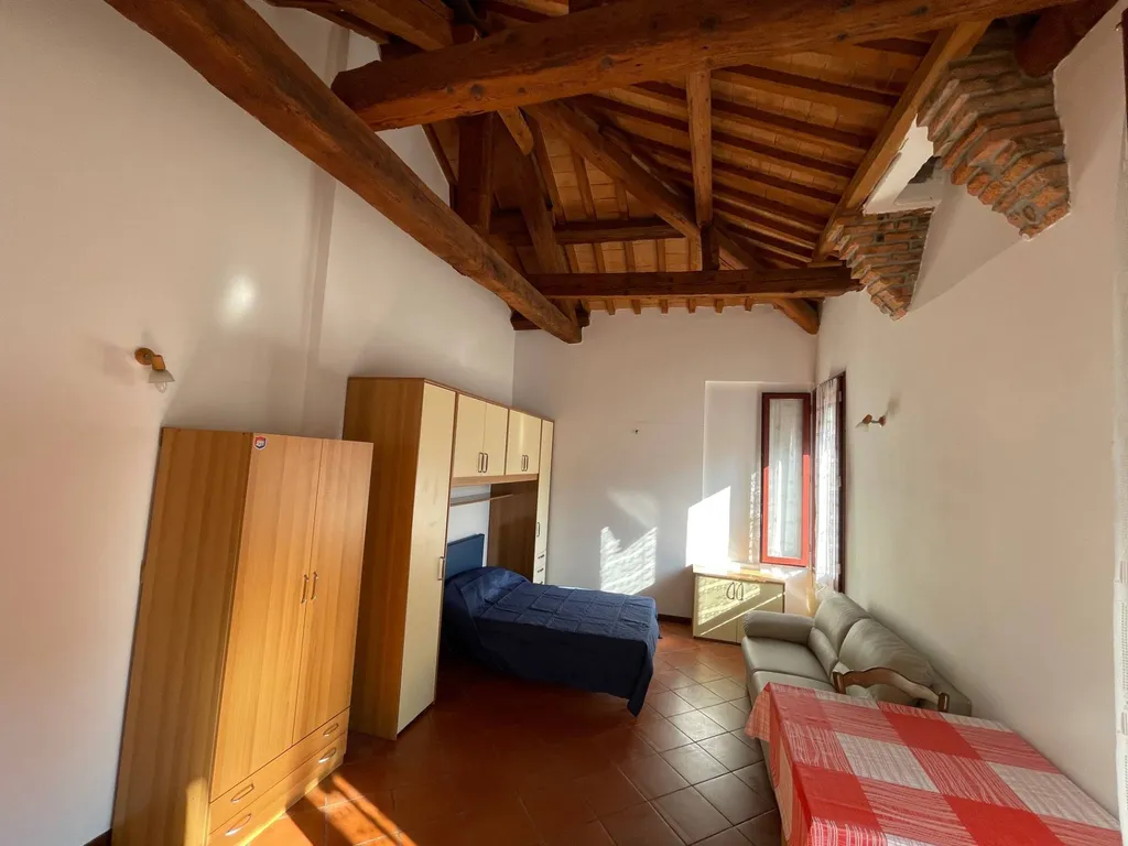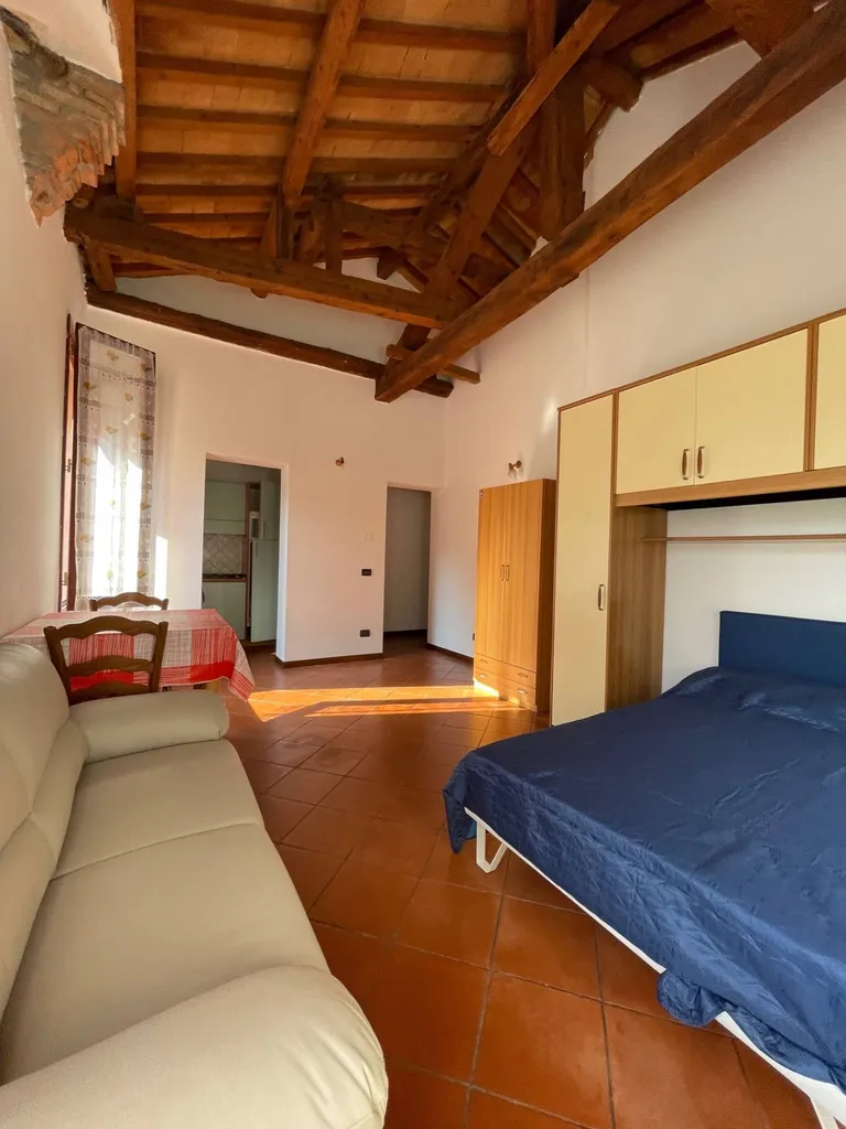 In tranquillo contesto storico ristrutturato, interno rispetto alla strada, monolocale arredato con letto matrimoniale, angolo cottura, e bagno. Completamente arredati con lavatrice.