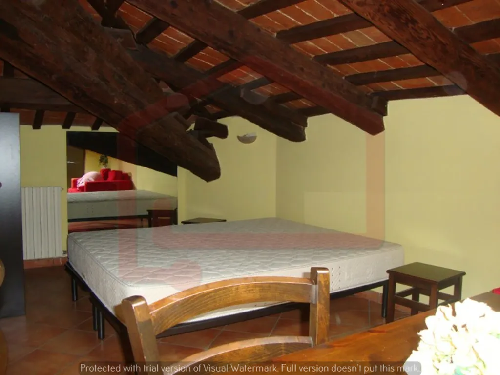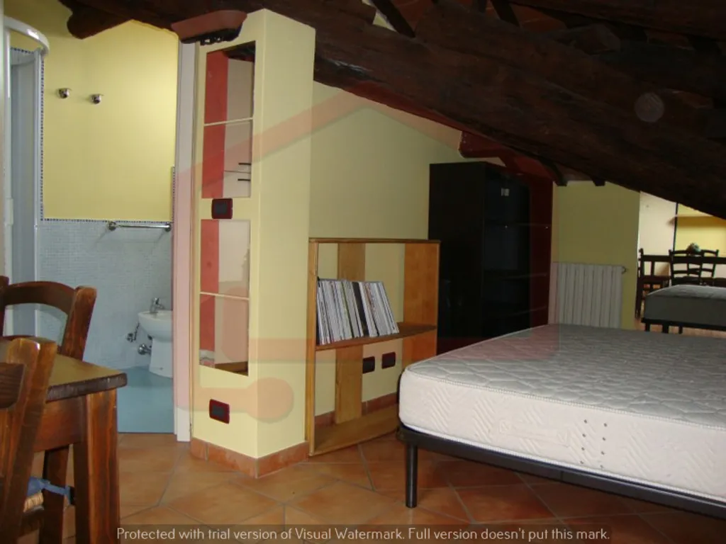 Monolocale al secondo ed ultimo piano mansardato, arredato e composto da: soggiorno con cucina a vista e ripostiglio, zona notte con letto matrimoniale, bagno finestrato.