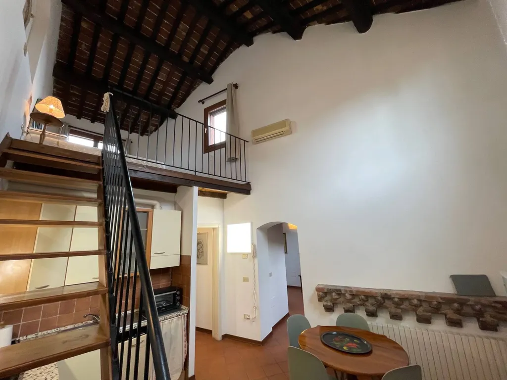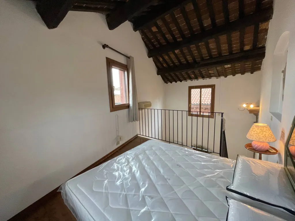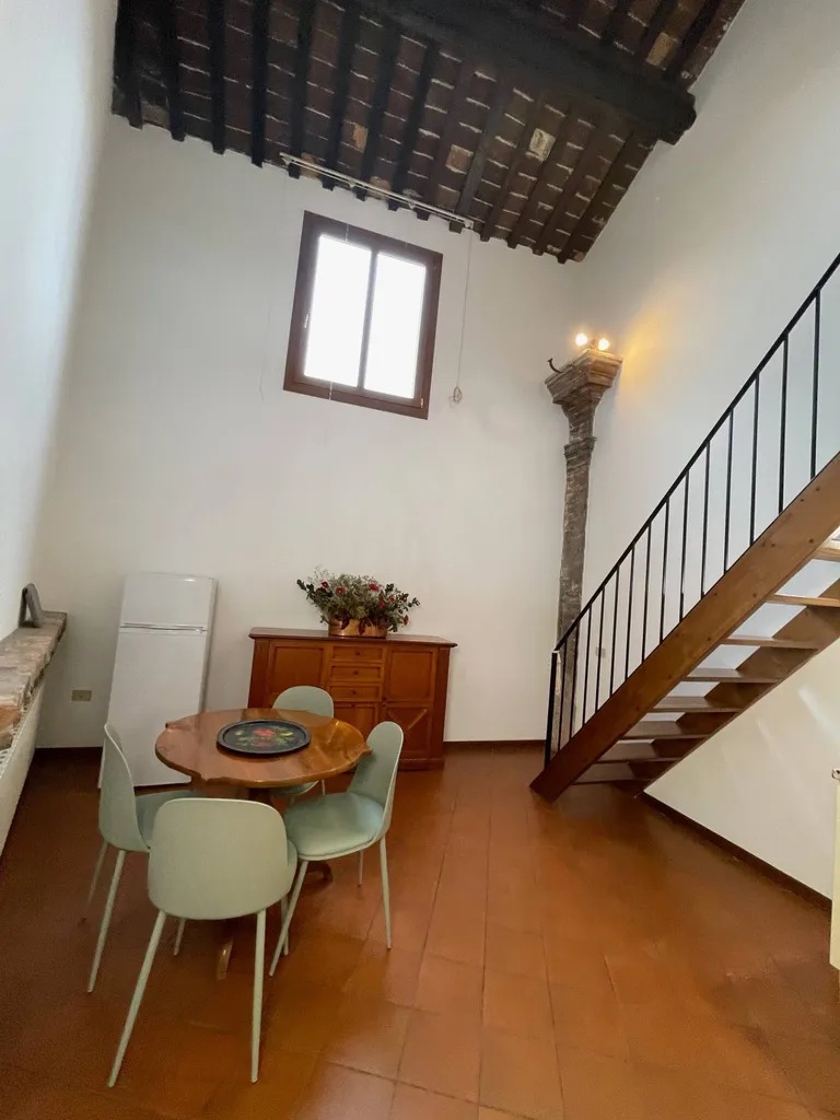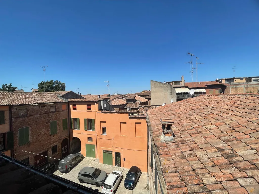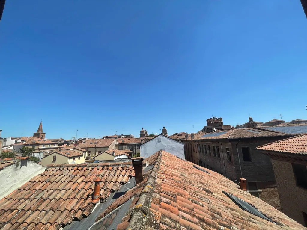 Rif. 3732 - Appartamento in Affitto a Ferrara, centro storico, adiacenze Corso Porta Reno. A due passi dalla cattedrale e comodo ai parcheggi, si affitta luminoso appartamento sito al secondo ed ultimo piano in piccola palazzina di sole quattro unità e attualmente composto da: ingresso su ampio soggiorno con zona studio e armadi a muro. Cucina abitabile con soffitto a vista e doppio volume. Antibagno e bagno. Camera da letto soppalcato con vista sui tetti della città.