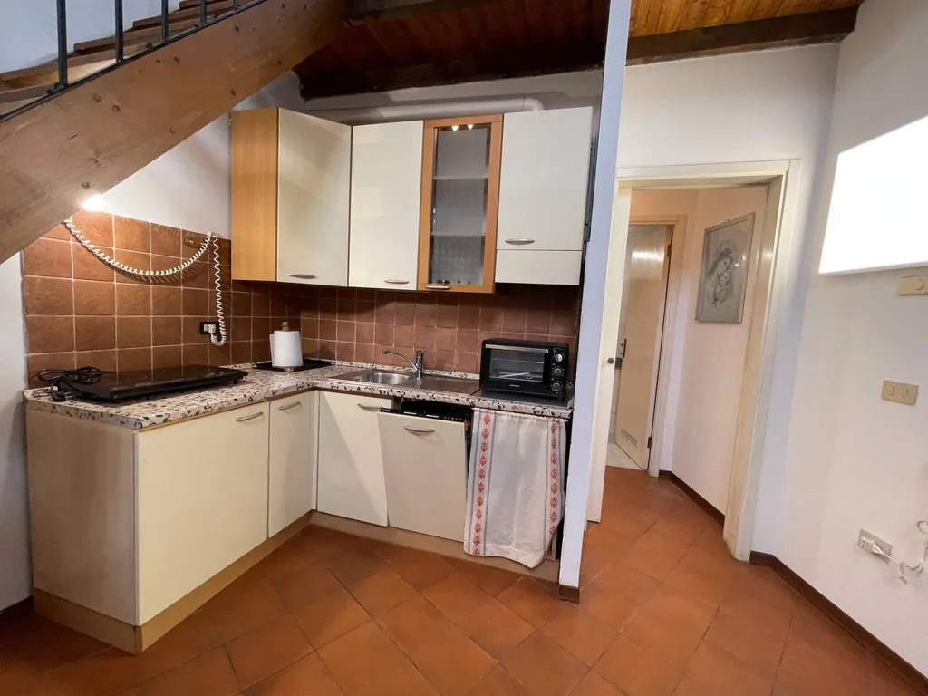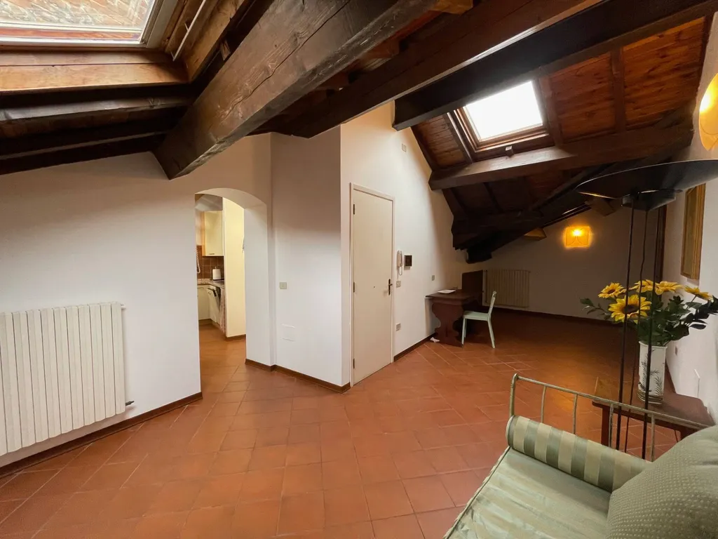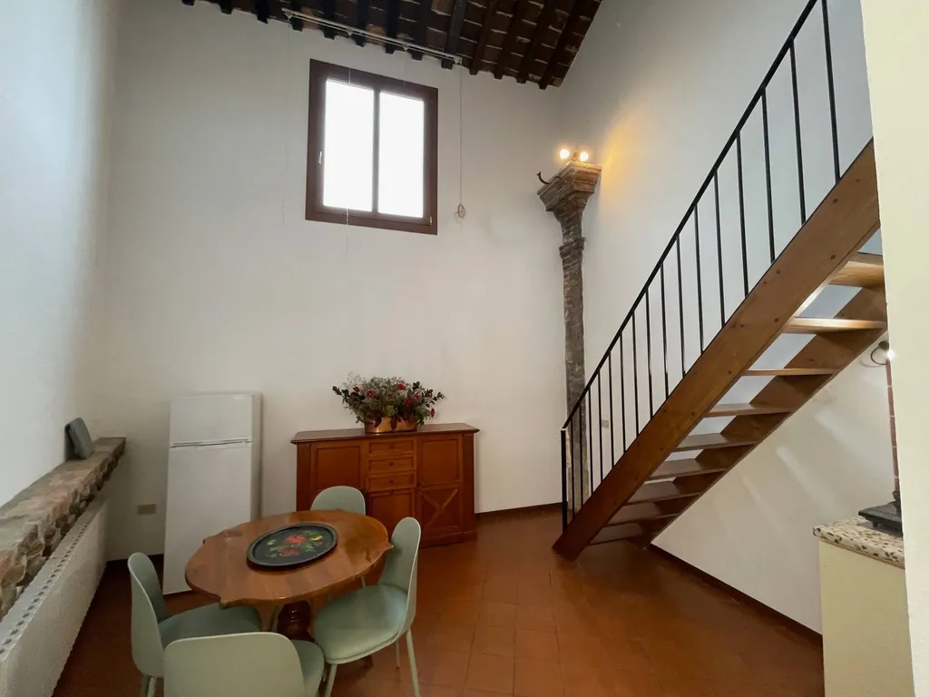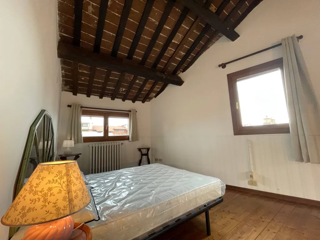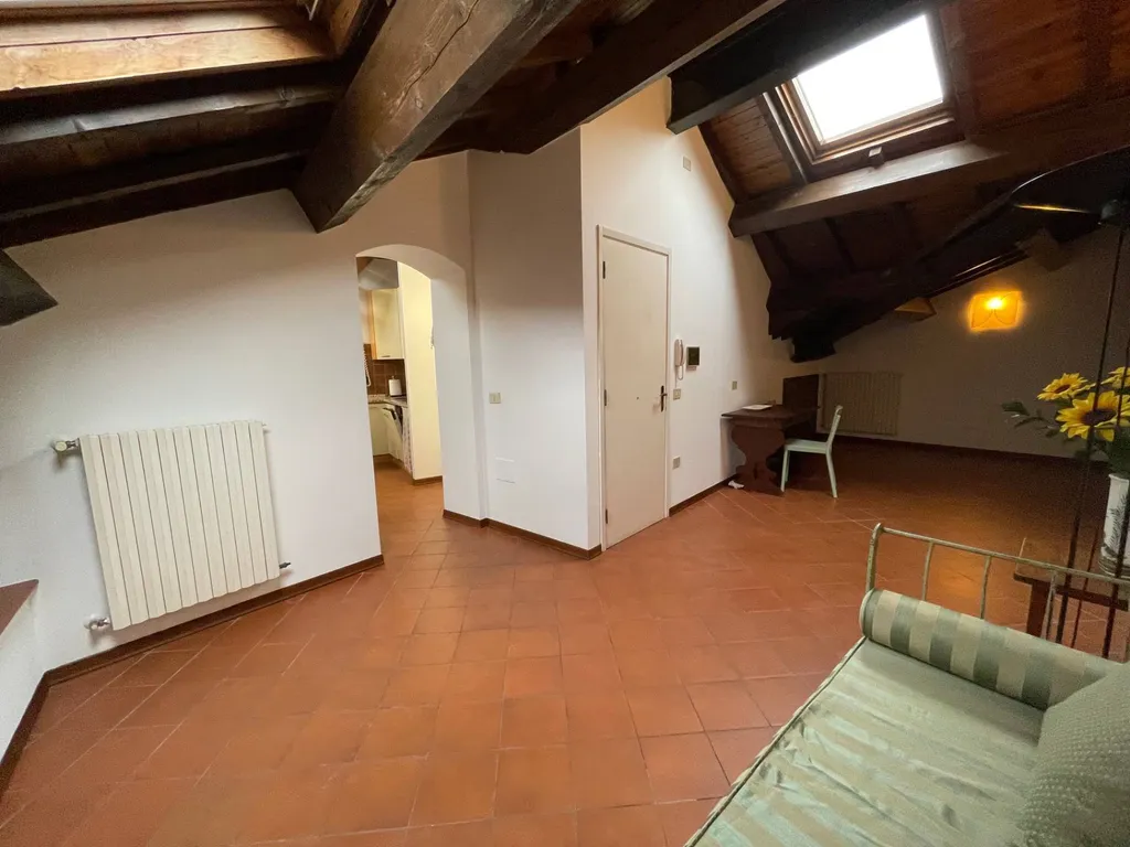 Rif. 3732 - Appartamento in Affitto a Ferrara, centro storico, adiacenze Corso Porta Reno. A due passi dalla cattedrale e comodo ai parcheggi, si affitta luminoso appartamento sito al secondo ed ultimo piano in piccola palazzina di sole quattro unità e attualmente composto da: ingresso su ampio soggiorno con zona studio e armadi a muro. Cucina abitabile con soffitto a vista e doppio volume. Antibagno e bagno. Camera da letto soppalcato con vista sui tetti della città.
