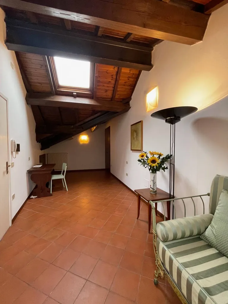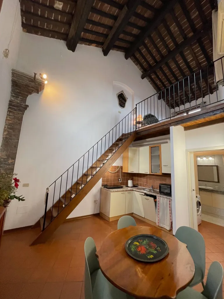 Tetto in legno a vista con soffitti che arrivano fino ai 5 mt di altezza, una splendida colonna con capitello inserita nella zona giorno cucina. Climatizzato.