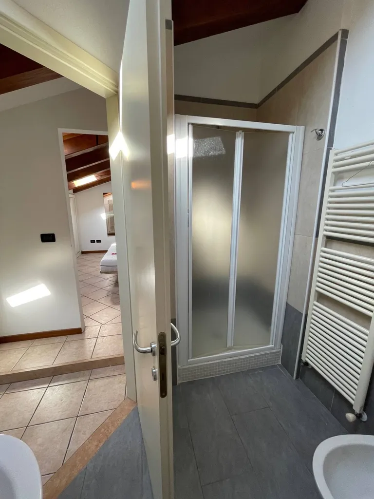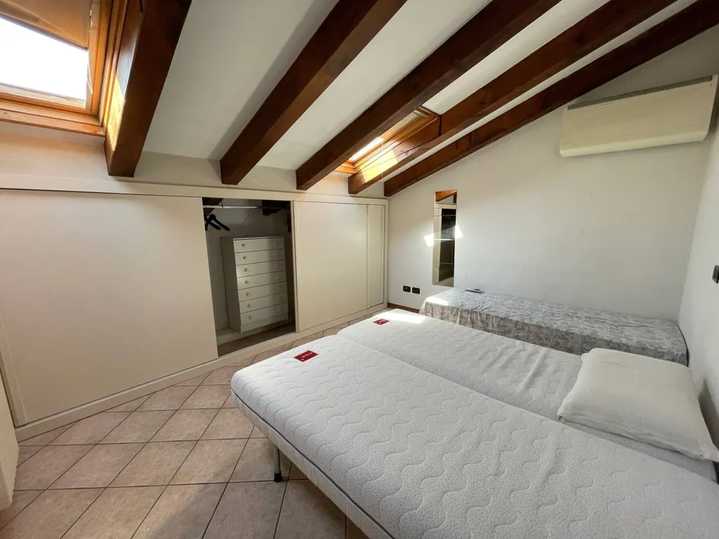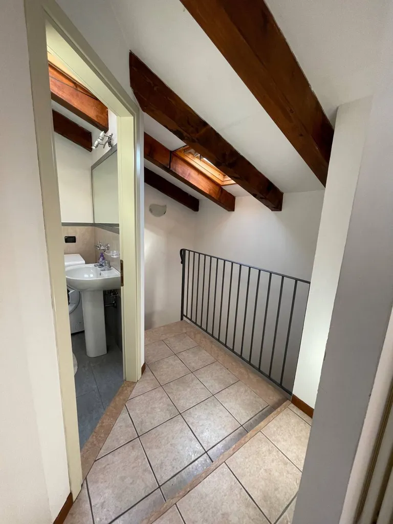 Ingresso su zona giorno con angolo cottura, al piano superiore mansardato camera da letto matrimoniale con armadiatura a muro e bagno con lavatrice, finestrato con lucernaio.
