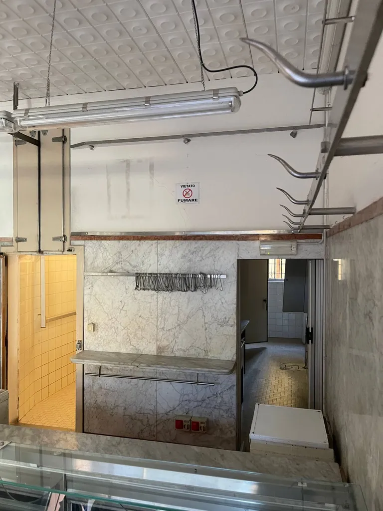 Rif. 3713 - Negozio ex Macelleria, in vendita a Ferrara Via Carlo Mayr angolo via Leoncorno. Situato in zona commerciale a due passi da centro e dai parcheggi, vendiamo un locale composto da un un vano principale di circa 25 mq con una vetrina di affaccio su strada. Due celle frigorifere, un disimpegno con attacchi acqua, un bagno finestrato e una porta di uscita indipendente sul retro. Impianto elettrico dotato di trifase, serranda elettrica, arredo stabile di macelleria storica. Assenza di canna fumaria e di riscaldamento.