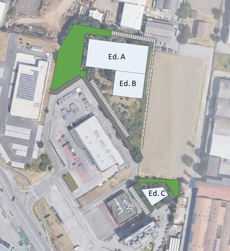 Lipotesi progettuale, visibile tra le immagini, prevede la realizzazione di 3 corpi con destinazione duso produttive e/o commerciali con relative dotazioni di aree verdi e parcheggi: