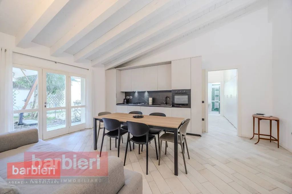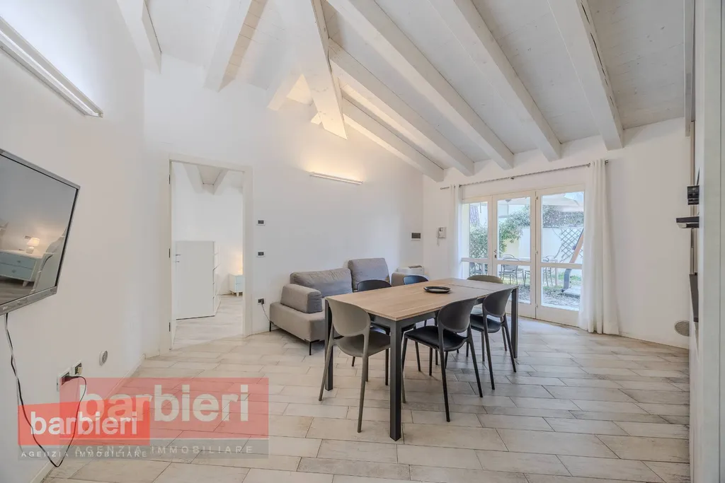 L'immobile, con ingresso e corte indipendente è sito al piano terra ed è composto da un ampio soggiorno con angolo cottura, due camere matrimoniali ed una camera matrimoniale con castello aggiuntivo. Bagno con box doccia e secondo bagno privato nella camera più grande. Tetto in legno con travi a vista.
