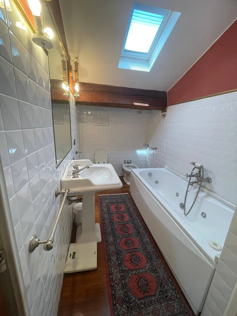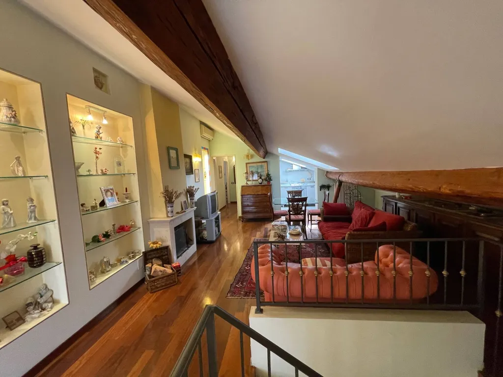 In stabile elegante e completamente ristrutturato senza ascensore, al terzo piano ingresso privato con ripostiglio e disimpegno che collega al piano superiore, si vende splendida mansarda composta da ingresso, soggiorno con salotto camino e zona pranzo con affaccio sui tetti della città, cucina separata e arredata su misura e dispensa con vano tecnico lavanderia/ripostiglio.