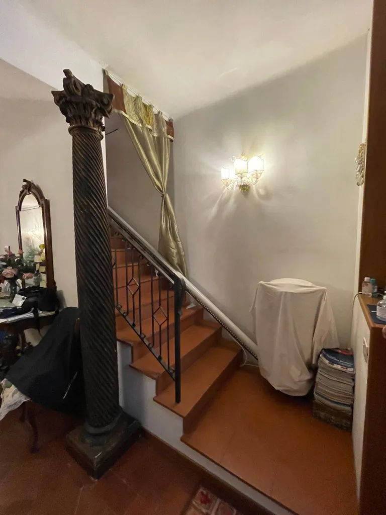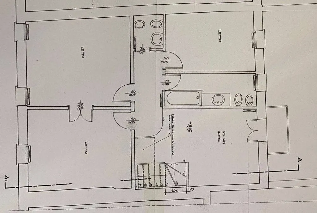 Il primo piano si compone di un ampio disimpegno attualmente utilizzato come zona studio, due camere da letto matrimoniali e una camera da letto doppia, due bagni.
