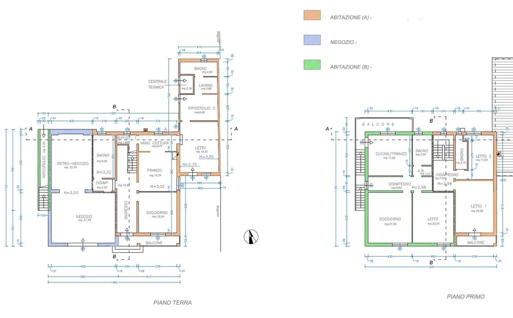 La casa, costruita nel 1965, e Ì composta da tre unità distinte. Una porzione di casa su piano terra e primo, una negozio allo stesso piano trasformabile in abitativo o in ufficio per una opportunità di case e lavoro. Tramite scala esterna si accede ad un' ulteriore unità abitativa al piano primo.