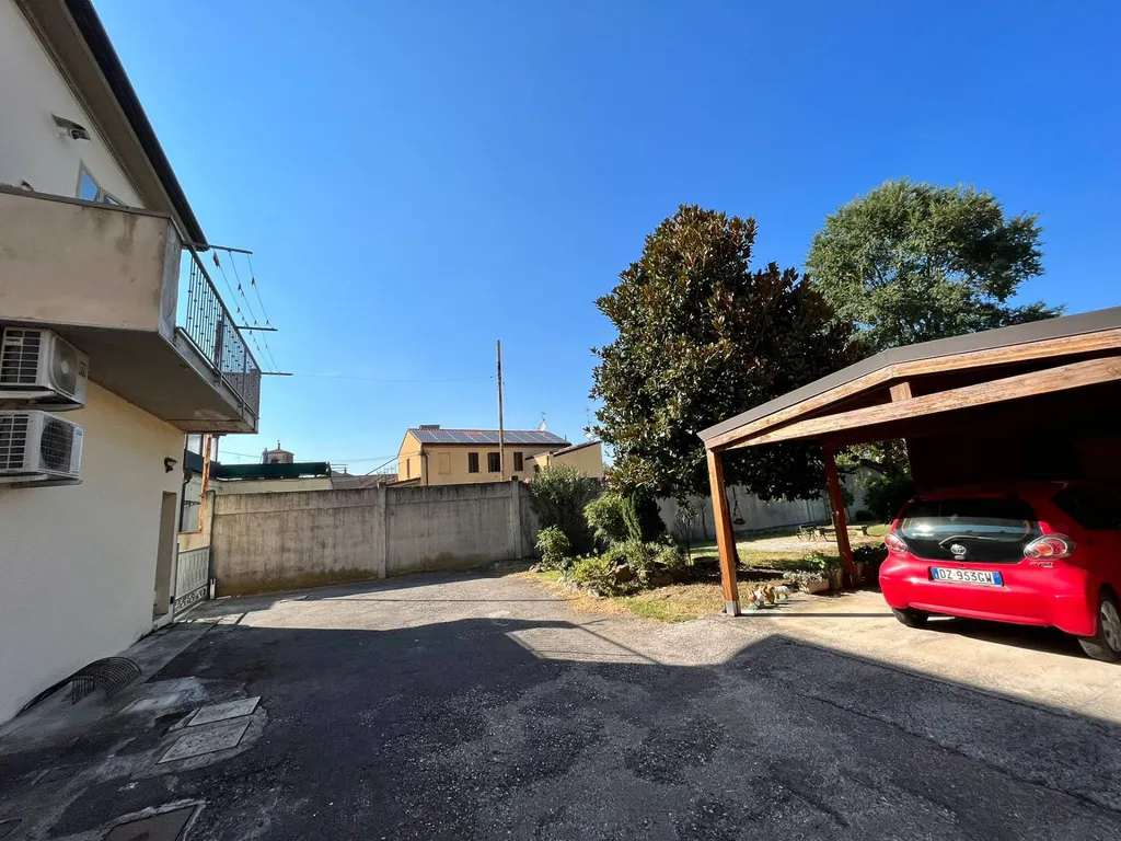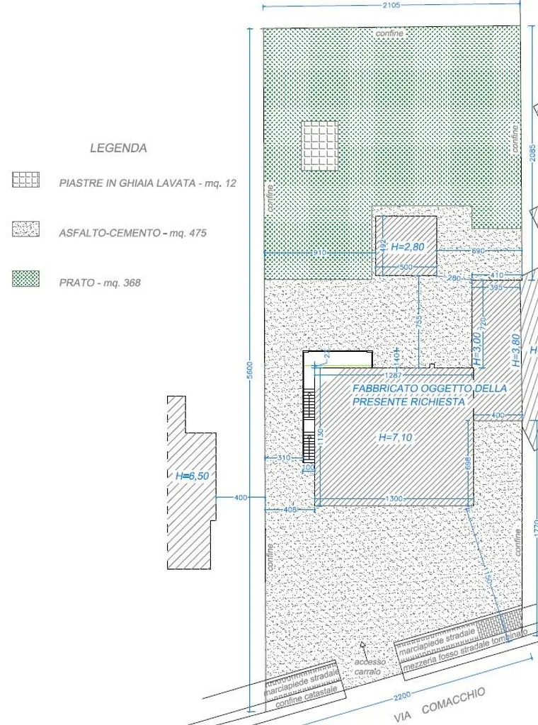 Nella parte posteriore oltre al giardino vi e´ un piazzale con tettoia dove possono stare comodamente due automobili. Lo spazio è di circa 2000 mq. Il terreno è fabbricabile verificando i piani comunali.