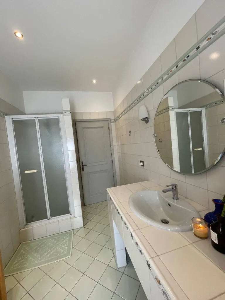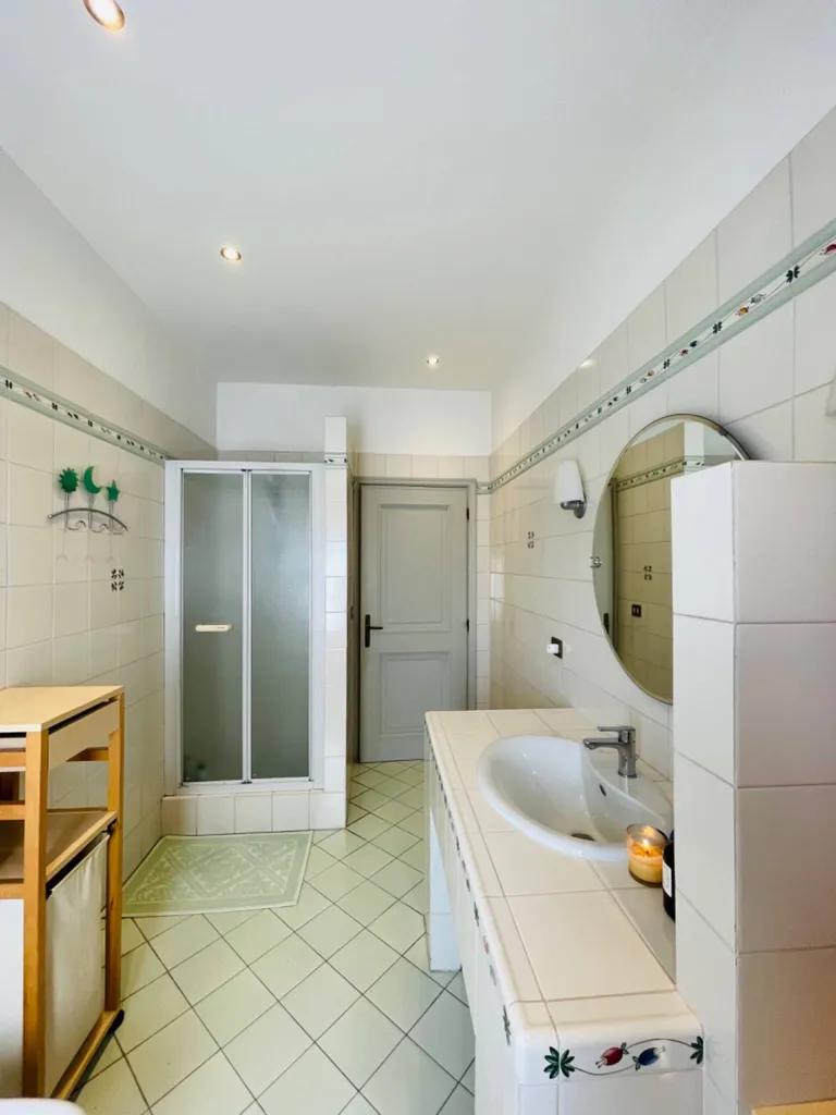 Lunità posta al piano terra è priva di barriere architettoniche e si compone di ingresso, soggiorno, sala da pranzo con affaccio sul meraviglioso giardino, cucina abitabile, due camere da letto matrimoniali e due bagni. Lunità è stata recentemente ristrutturata. Classe energetica G.