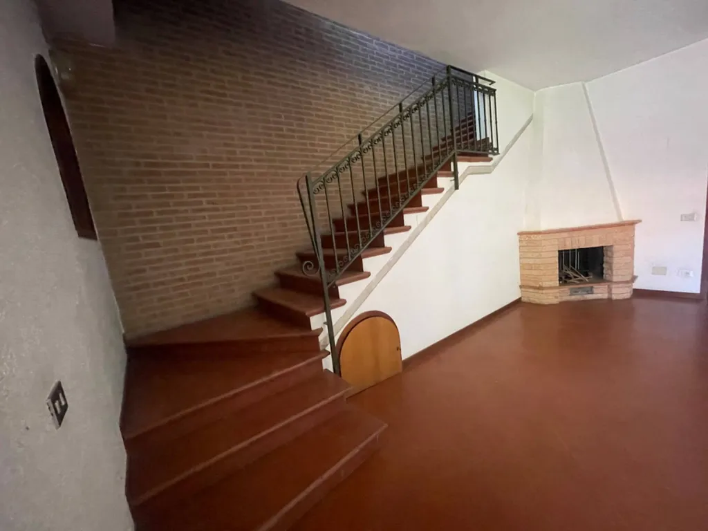 Al piano rialzato si sviluppa la zona giorno, composta da grande salone con camino e terrazzo ideale per godersi momenti di relax e di convivialità all'aperto, cucina con zona pranzo dotata di ampio balcone, un bagno finestrato e un ripostiglio.