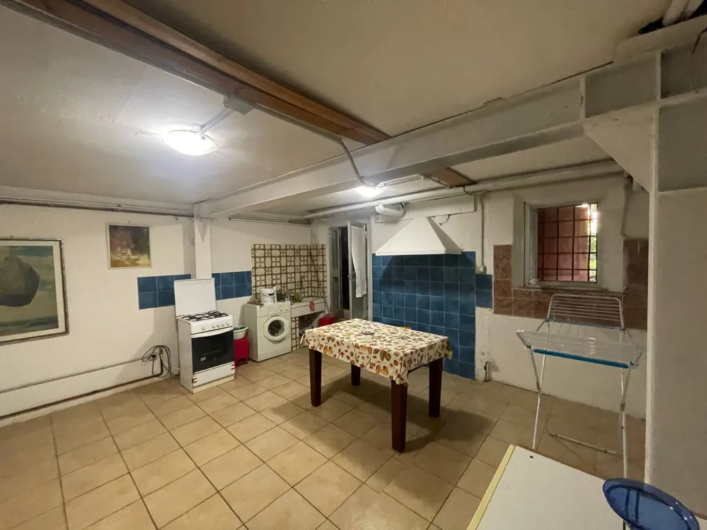 Al piano seminterrato zona servizi/taverna con ulteriore accesso al giardino esclusivo. Attualmente diviso in 4 grandi vani ad uso lavanderia e ripostigli.
