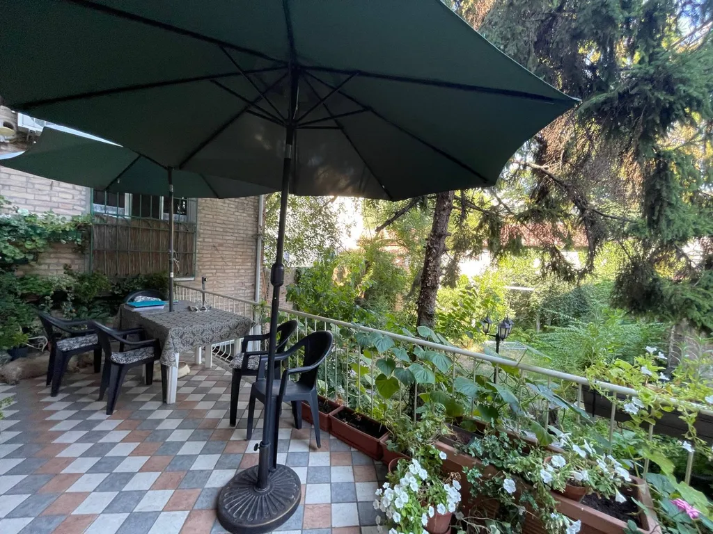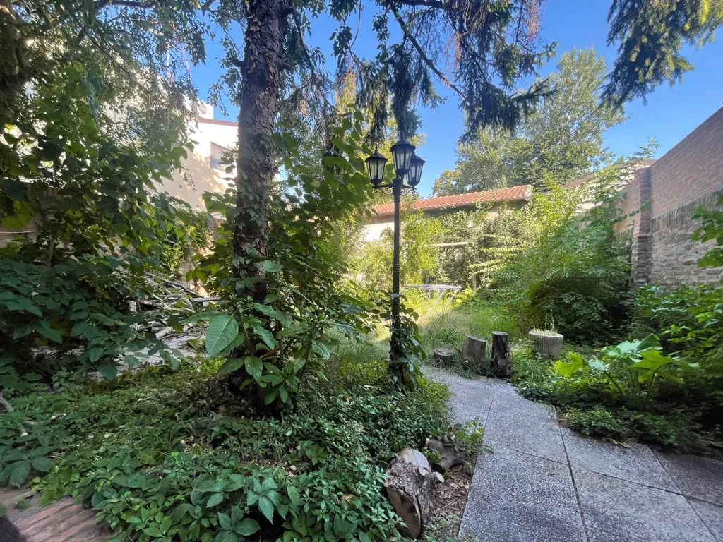 Un grande giardino di circa 200 mq in parte piantumato con alberi ad alto fusto, regala alla casa una bella vista sugli interni e molta tranquilità.