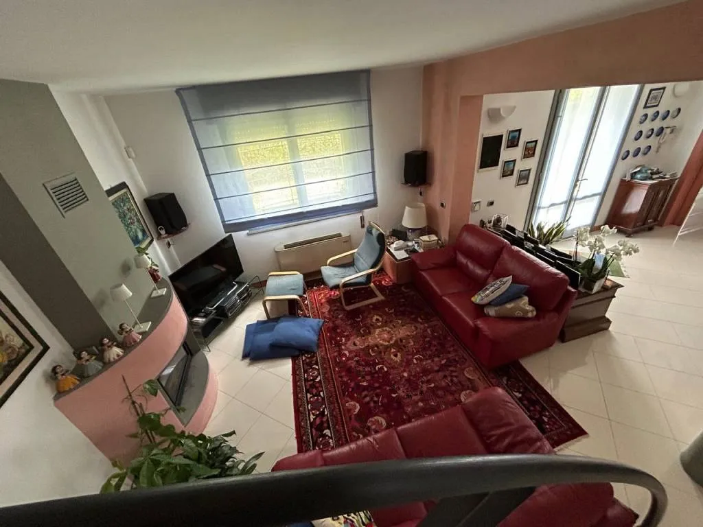 Rif. Via Caretti - Ca' Doro in posizione interna e tranquilla immersa nel verde, splendida Villa di recente costruzione in perfetto stato di manutenzione, libera su 4 lati composta da 2 unità abitative indipendenti e ampio giardino. L'unità abitativa principale si compone al piano terra di un ingresso indipendente con ampia cucina abitabile, salone con camino, bagno finestrato e ripostiglio, garage di 50 mq. comunicante (ad oggi adibito a taverna) e vano tecnico. Al piano primo 3 camere da letto matrimoniali ampio bagno e balcone. La seconda unità si compone al piano terra da un ingresso su ampia zona giorno con angolo cottura, ripostiglio e bagno finestrato, al piano primo una camera da letto matrimoniale, un bagno finestrato e un balcone. Scoperto esclusivo di 700 mq. c in ampia parte a giardino con 3 posti auto. Riscaldamento autonomo. Ottime rifiniture, climatizzata. (IDEALE COME SOLUZIONE GENITORI/FIGLI)