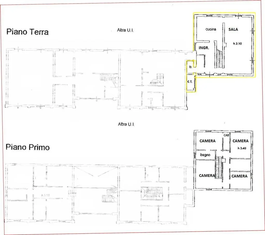 al piano terra ingresso, cucina abitabile, ampio salone con camino con affaccio e accesso sul patio, bagno, zona lavanderia, cantina. Al primo piano, 4 camere da letto, bagno e cabine armadi.